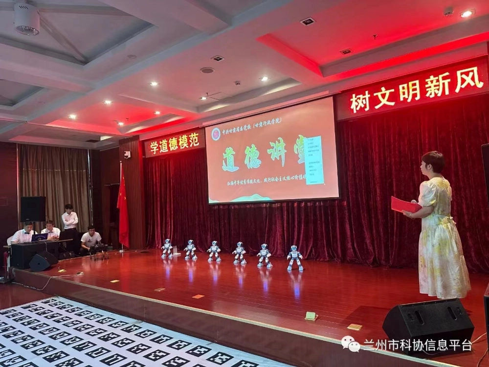 7月5日,兰州市科协科普大篷车受邀参加中共甘肃省委党校(甘肃行政学院)道德讲堂活动,为社会和生态文明教研部、资源环境与生态文明专业研究生班的100余名老师、学员送去了一场科普盛宴。活动现场,市科协工作人员展出了人形机器人舞蹈《少林英雄》、四足机器狗后空翻、无人机编队飞行等表演,让在场的老师和学员耳目一新,过足了“科技瘾”。并希望多多来这里开展活动。