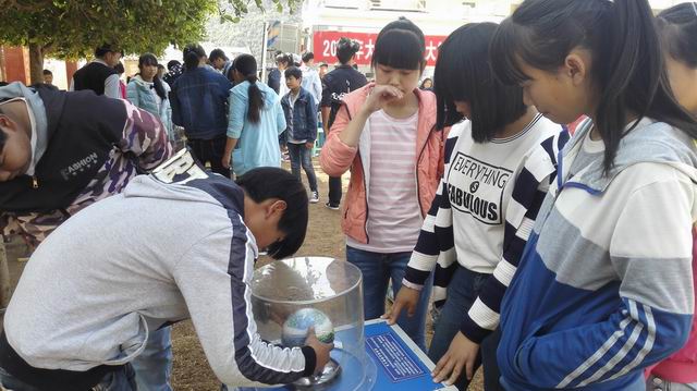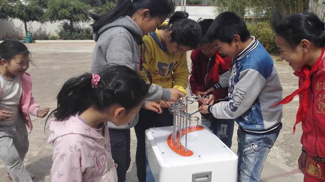 科普大篷车共展出了“人体导电”、“穿针引线”、“怒发冲冠”、“九连环”等十多种涉及电、光、磁、数学等多个科学原理的科教展品,3D立体展板24块。并组织同学们观看了十多部科普短片。活动使学生们开阔了视野、增长了知识,并在动手、动脑的观摩实践中领略到科学的奥秘,激发了学生学科学、爱科学的热情,提高了学生的创新思维和创新能力。