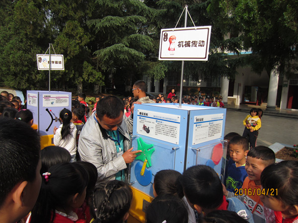 “科普大篷车”为广大师生带来了“数学思维”、“电磁现象”、“运动与力”、“视觉体验”、“材料科学”、“机械转动”等24件科教展品,充分展示了数学、光学、电磁学等方面的科学原理。该校校长高文珍饶有兴致的和学生们一起认真研究展教器具,高年级学生对展品表现出浓厚兴趣,并能结合课堂所学知识对相关原理进行更加直观深入的理解。
