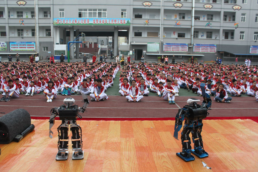 同学们观看仿人机器人表演