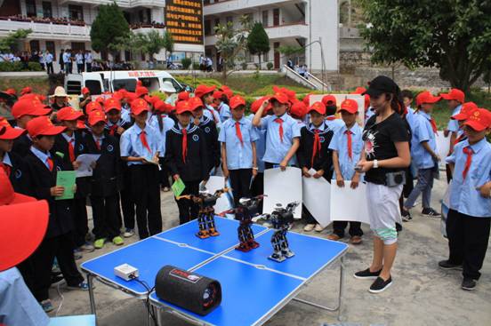 南涧县公郎小学400多名师生和乐秋中学的590多名师生怀着无比期待的心情,井然有序的参观了我们的《航空航天知识》3D展板展区、车载展品展教区和机器人展区。形象生动的展示内容拓展了同学们的视野,在动手体验的过程中,他们学到了许多书本上接触不到的知识,机器人展区的科普知识问答和互动环节深受师生喜爱。