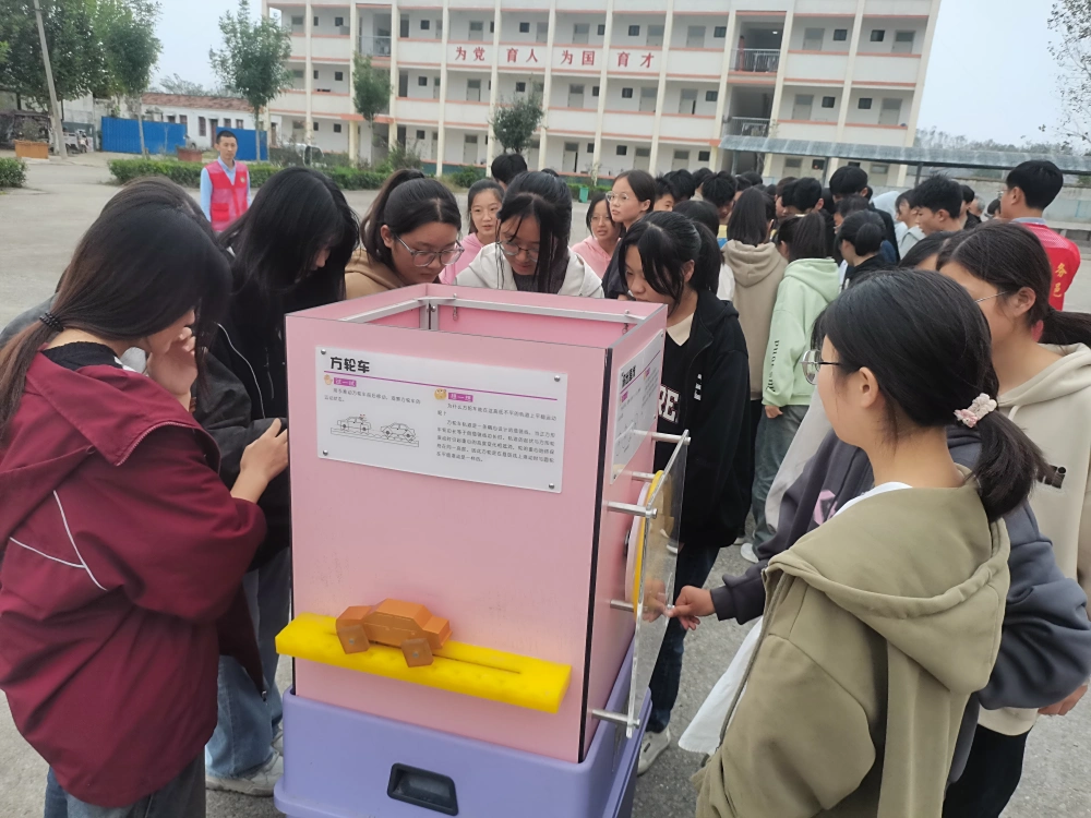 走进校园的广场上,“科普大篷车”正在向同学们普及物理科学知识,通过丰富的模型,以此带动同学们的好奇心,帮助他们推开科技的大门。
