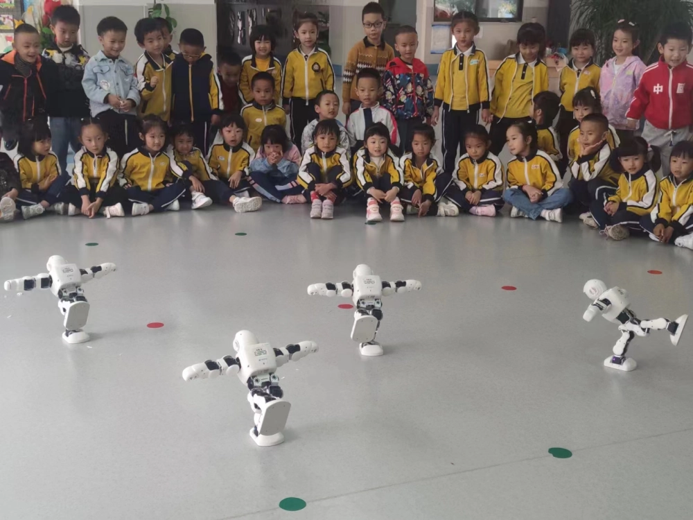 大理州科协为孩子们带来了充满科技感、妙趣横生的机器人表演及机器狗展示。机器人表演唱歌、跳舞等引起了小朋友们极大的兴趣,引得同学们拍手叫好。机器狗表演拜年、跳舞、太空步、侧滚翻、后空翻等动作令同学们赞不绝口,大家时不时想要上去抚摸机器狗,体验人机互动和交流的乐趣。