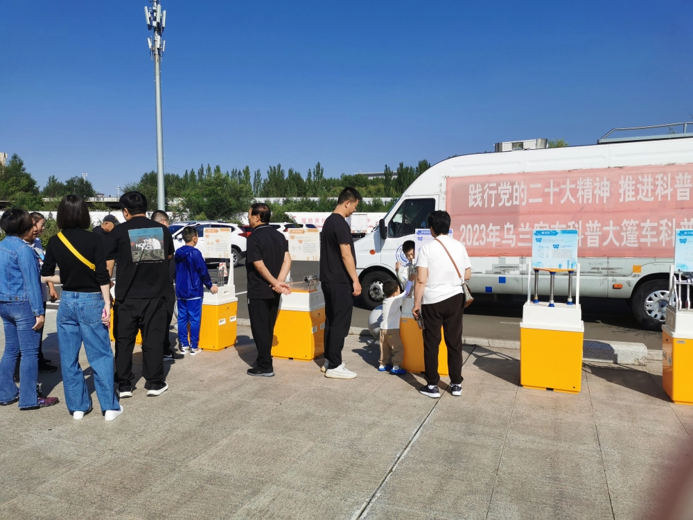 2023年8月26日,内蒙古乌兰察布科技馆组织开展科普大篷车进社区活动,此次活动来到了集宁新区乌兰察布博物馆,面向周边群众开展了科学普及活动。本次活动采取展板和展品相结合的形式,向公众传播水、火、交通、食品、信息等方面的安全知识,同时普及急救常识等与居民日常生活密切相关的科普知识,倡导大众养成科学的生活方式。活动吸引了周边居民、中小学生、社会各界人士前来观展。此次大篷车进社区活动,还向社区居民发放了大量科普宣传资料和科普纪念品。