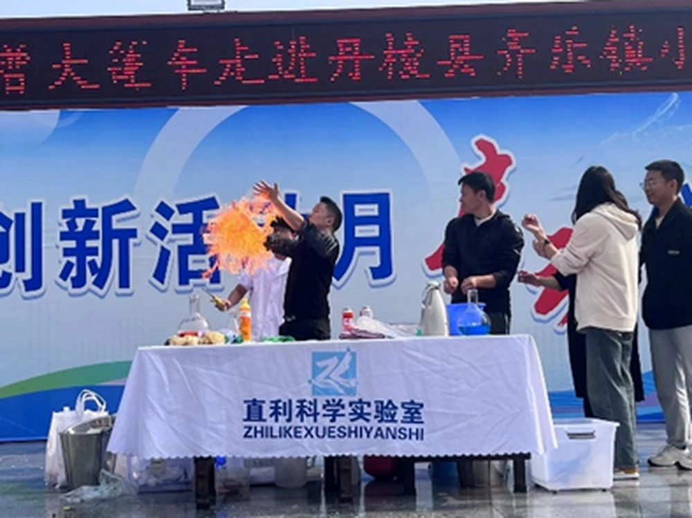 本次活动分为四个板块,分别为观看机器人表演、无人机表演和科学实验展示不同的科普展品。在科普志愿老师们的带领下,孩子们上台和机器人共舞,近距离感受科技的发展。在孩子们的欢呼声中,无人机列队缓缓升空,同时也带动了活动现场浓厚的气氛。第三个板块也是活动的高潮部分,科普志愿者老师们展示了“变大变小”、“火焰掌”、“冷热碰撞”等实验,将实验室的实验搬到学校里,让这场活动彻底沸腾起来。
