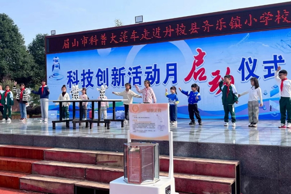 为活跃乡村学校学生科技活动,助力乡村全面振兴。2023年11月7日上午,由眉山市科协、眉山市教体局联合丹棱县科协、丹棱县教体局举办的“科普大篷车进校园”科普宣传活动走进齐乐镇小学,全校1100名学生积极参与到这次科普活动中来。