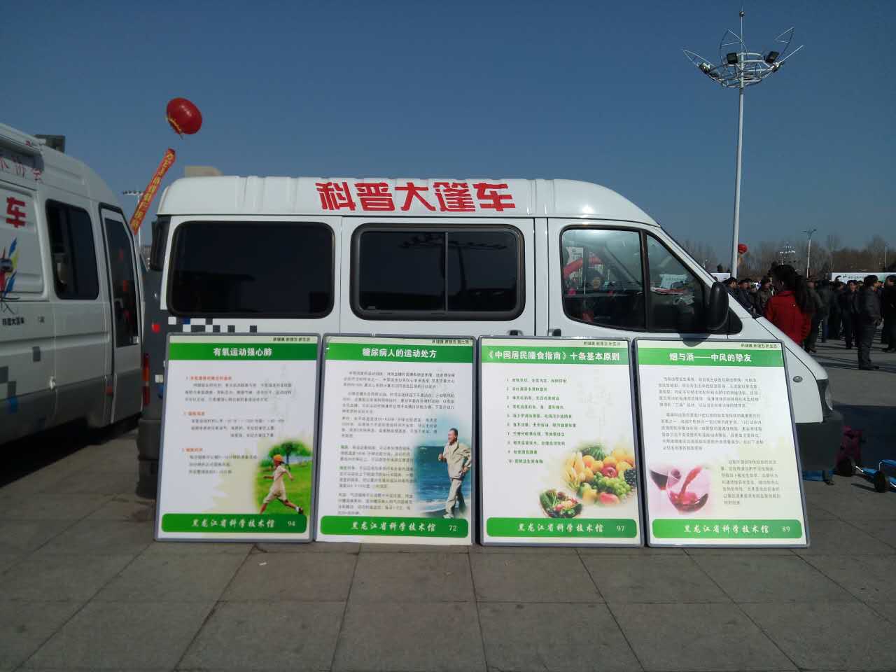 科普大篷车正在展示《新健康、新理念、新生活》主题展板