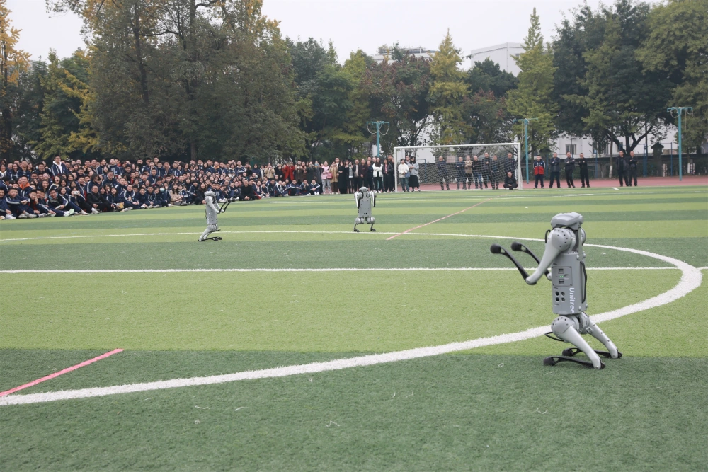 展览现场,德阳市科普大篷车展示了众多科技创新成果,其中包括机器狗舞蹈等。机器狗表演作为本次展览的亮点之一,引发了学生们极大的兴趣。这款机器狗具备自主导航、智能避障、后空翻等功能,还能随着音乐节奏舞蹈,展示了人工智能技术的魅力。同学们纷纷拍手叫好,并表示希望今后能成为科技创新的栋梁之才。