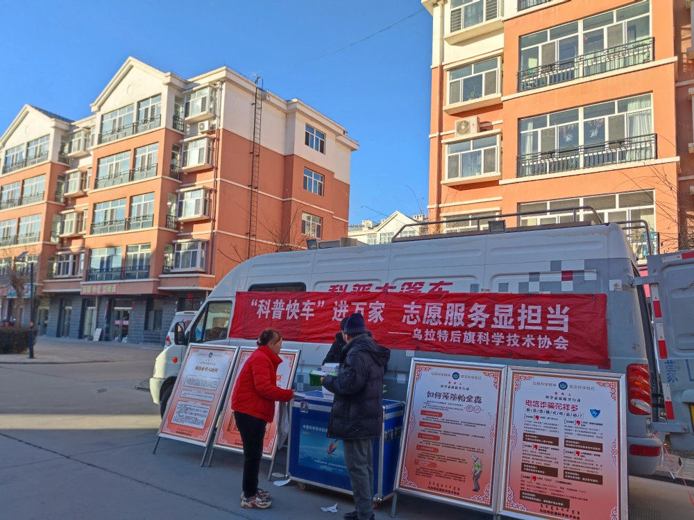 为弘扬科学精神、普及科学知识,丰富社区群众科学文化生活,进一步在居民中传播科学思想,提升居民的科学素养,11月25日,乌拉特后旗科协科普大篷车走进海日峰小区开展“科普快车”进万家活动。活动中发放《农民科学素质知识读本》科普书籍 100 余册,洗洁精、宣传袋等科普宣传品 50余件,成功注册“大美志愿 ”小程序志愿者 23 名。此次活动有效弥补了社区科普资源短缺、科普阵地薄弱的现状,为居民朋友们搭建了学习科技知识、感受科技魅力、体验科技便利的良好平台。