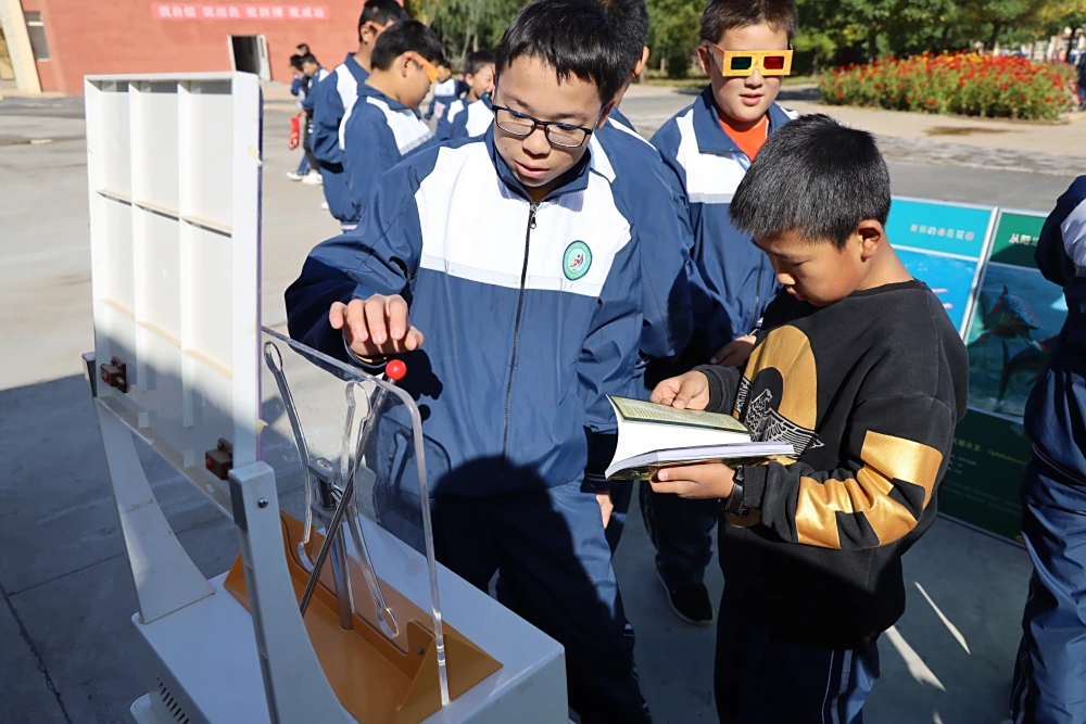 科普大篷车作为“流动的科技馆”,以丰富多彩的展示内容、多种媒体的教育方法、机动灵活的活动方式,使学生易于理解、接受和自觉参与,更好地将科学思想和科学方法传播到学校群体中。师生们跟随科普志愿者热情洋溢的讲解,主动观察、实操、思考、讨论,有效提高了动手实践能力。活动现场气氛热烈,同学们展现了强烈的求知愿望和参与热情,埋下一颗热爱科学的种子。