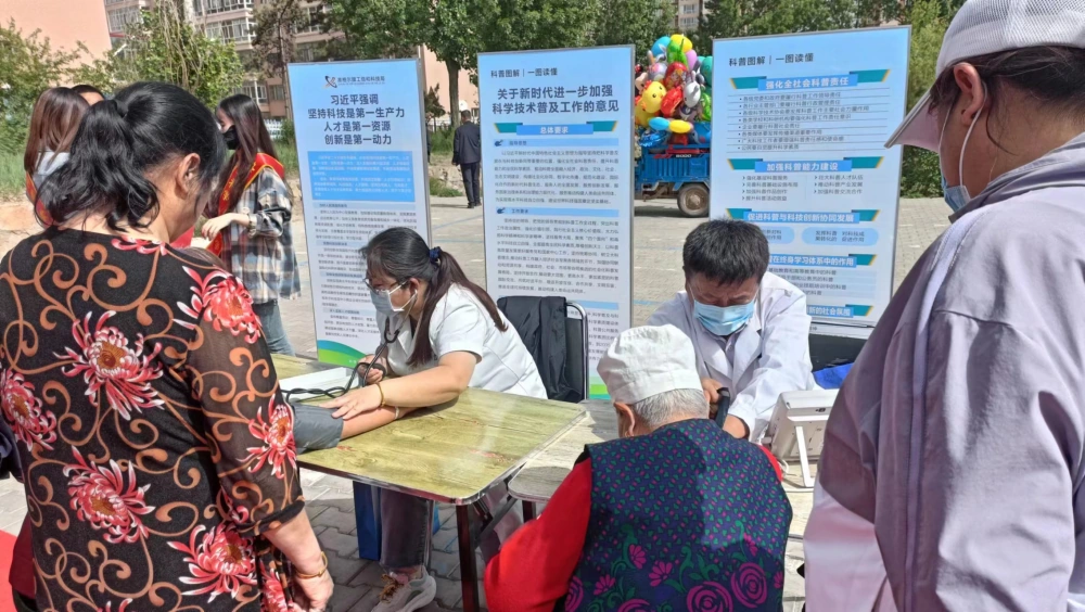 活动现场,科普志愿服务队的志愿者们利用科普大篷车展示了解科学知识,包括科学技术普及等方面的内容。同时,志愿者们还通过现场讲解、互动体验等形式,向社区居民深入浅出地介绍了我国的民族政策、民族文化等方面的内容,同时加强了民族法治宣传教育。