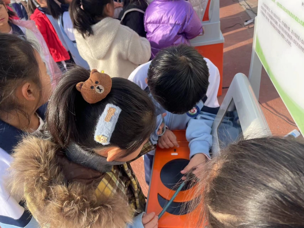 科普大篷车携带的20多件科普展品涉及物理、数学、力学、磁学等学科,吸引了学生们的好奇。活动现场,学生依次参加各个展览区域,进行互动体验。他们的小手触摸互动展板,亲眼见证静电的产生;他们倾听“激光琴”中传来的美妙琴音;他们亲手操作各种实验器材,探索科学背后的奥秘。通过亲身体验,学生们不仅增长了知识,还亲身体验感受到科技的神奇力量。