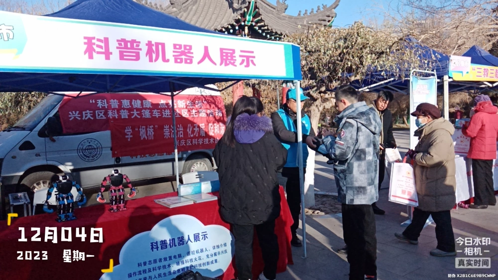 12月4日上午,兴庆区科协大篷车走进中山公园宪法广场参加司法局等单位开展,2023年12月4日“国家宪法日”集中宣传活动。现场展示了机器人,机器狗。发放科普知识手册60册,抽纸50盒,反对邪教知识50本,各类健康知识、张、折页100余张,消防安全知识60余张。行驶15公里,受益200余人次。