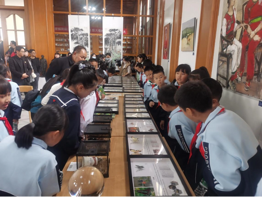 此次活动表彰了捐赠图书的先进个人和集体,同时组织学生上台分享自己喜爱的书籍、分享读书心得,学生们激情慷慨的演讲,将读书分享会的氛围一度推上高潮,彰显出了新生花朵的朝气与活力。最后,大理市科协邀请诺一生物科技有限公司,为大家展示了各种昆虫标本,并组织小学生实操制作昆虫标本。