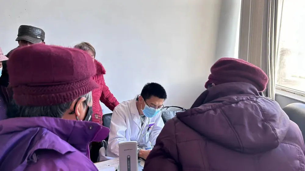 乌兰察布市中蒙医院主治医师张志鹏现场为农牧民进行免费义诊,细心为患者把脉、测血压,量体温,治疗颈椎病、偏头痛等常见疾病,提供健康生活、运动建议20余条。