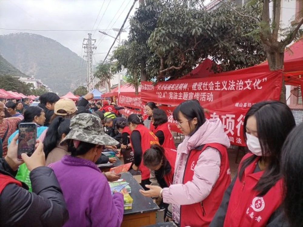 为开展好第十个国家宪法日和的“宪法宣传周”宣传活动,在“大力弘扬宪法精神、建设社会主义法治文化”中发挥科协力量,2023年12月4日,峨山县科协出动科普大篷车1辆,联合县科技志愿者服务队和少数民族科普志愿服务队,科协干部职工和科普志愿者共同到峨山县岔河乡集镇开展宪法宣传周集中宣传活动。