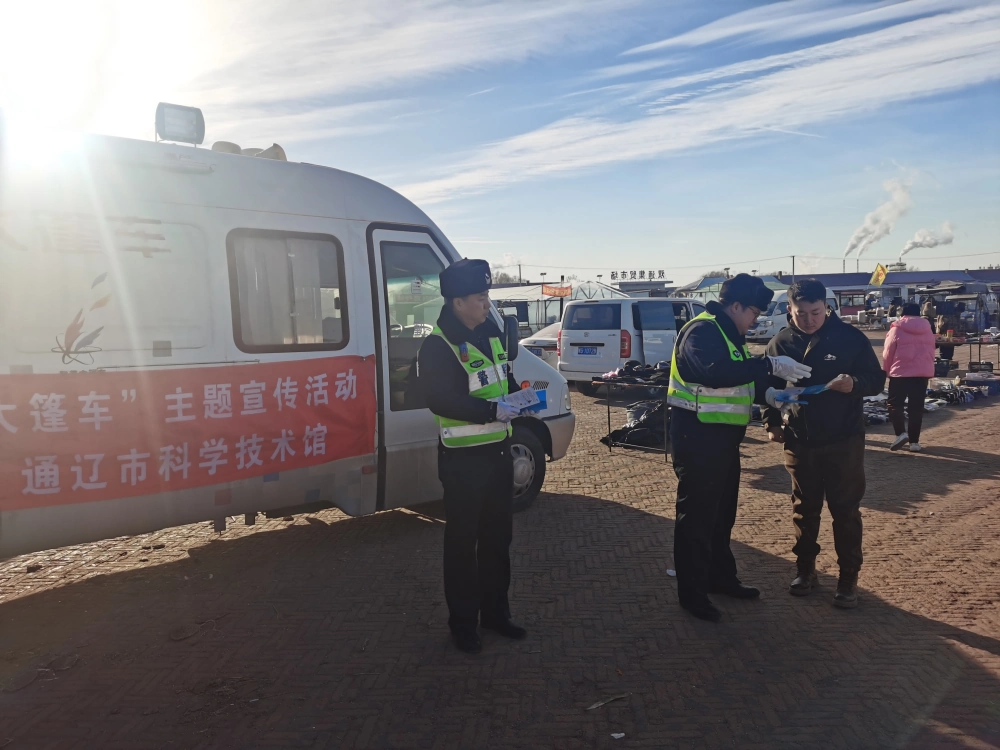进一步强化农村地区交通安全宣传工作,增强农村地区交通参与者的安全意识,12月7日,通辽市科技馆联合开发区分局交管大队走进双通集贸市场开展“科普大篷车美丽乡村行”交通安全巡回宣讲活动。活动中,科普志愿者结合122全国交通安全日“文明交通你我同行”主题,通过讲解事故案例、发放科普宣传单、交通安全科普知识宣讲以及拉家常等形式,结合农村周边道路交通实际及群众出行特点,面对面讲解日常走路、乘车、骑车等方面的安全科普知识,并讲解如何规范使用安全带、正确佩戴安全头盔等常识以及安全文明出行的注意事项,教育群众不超员、不酒驾、不疲劳驾驶、不超速行驶等。