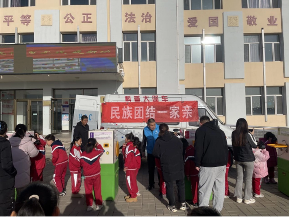 “科普大篷车”带来了丰富多样的科技展品,为同学们打造一个亲身参与、动手操作的学习环境,让孩子们能够与科技“零距离”接触,充分感受科技的魅力。同时,科普志愿者为学生们带来了有关民族团结、科学知识等内容的宣传资料,引导全体师生牢固树立休戚与共、荣辱与共、生死与共、命运与共的共同体理念,推动中华民族共同体意识不断增强。