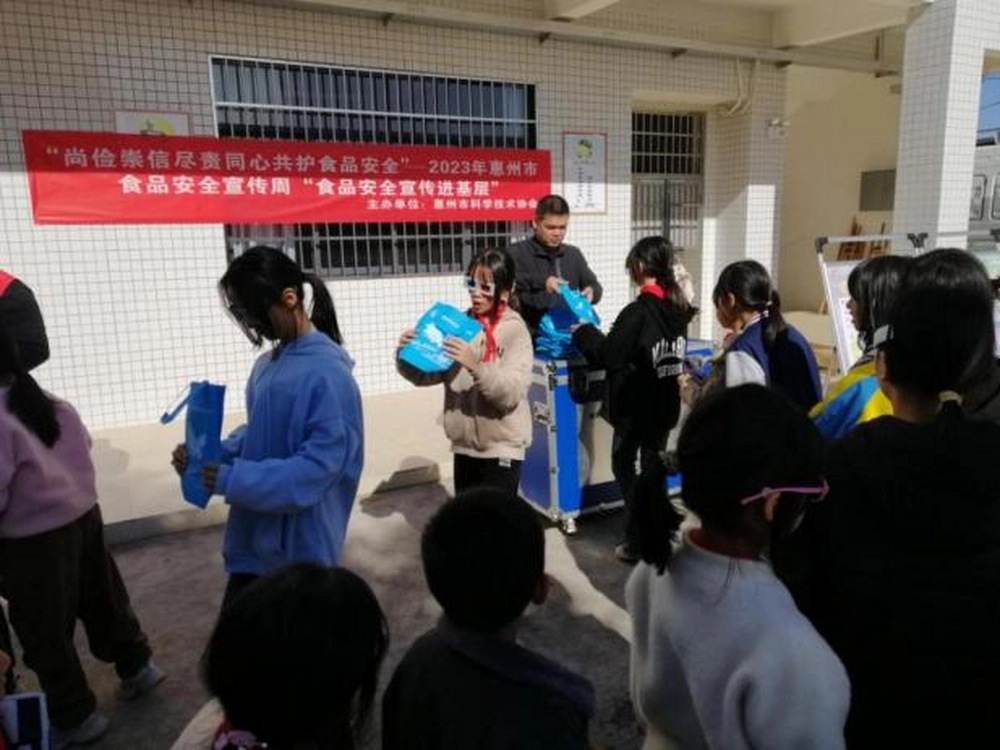 根据《惠州市食品药品安全与高质量发展委员会办公室关于开展2023 年惠州市食品安全宣传周活动的通知》精神(惠食药安办〔2023〕49 号文),为进一步加大食品安全宣传工作力度,普及食品安全科学知识,提升公众食品安全素养,12月8日至13日,惠州市科协科普大篷车分别到惠东县、龙门县的学校和乡村开展“食品安全进基层”宣传活动,此次活动的主题是:“尚俭崇信尽责.同心共护食品安全”。
