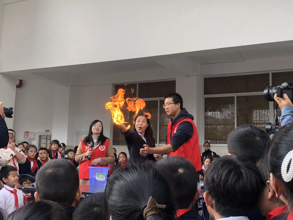 上午,在文化小学,一首《小苹果》引爆全场,随着歌曲的播放,机器人的舞姿深深吸引了同学们。随后,科普志愿者又为大家带来《泡泡龙》、《空气大力士》、《铅笔穿水袋》科学实验秀表演和科普大篷车参观体验等活动,活动中,学生们在动手操作和亲自感知中探索着,现场探讨声、惊叹声此起彼伏,充满欢声笑语。