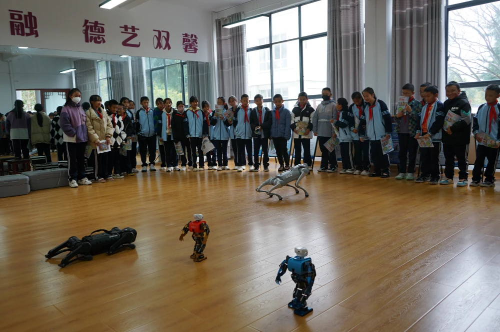 活动主要展出了科普大篷车车载展品、机器人、机器狗表演、科普展板以及发放科普宣传资料等精彩内容,学生们在老师的组织下有序参观、体验,零距离感受科技的无穷魅力。现场气氛热烈,掌声、欢呼声不断。机器人整齐划一的动感舞蹈,令学生们惊叹不已,大家纷纷跟随音乐节拍起步跳舞;3D展板体验,更是将学生们带到一个奇幻奥妙的虚拟世界,大家身临其境,领略科技的神奇之处。