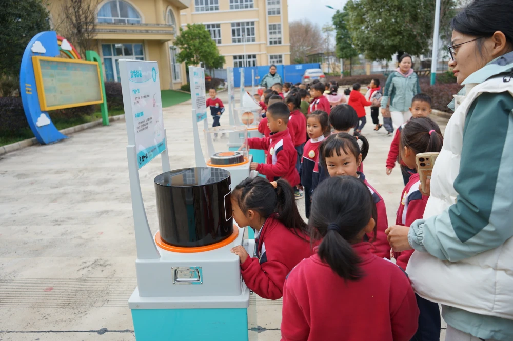 “双曲狭缝”“旋转的镜像”“最速降线”……40余件科普展品和50余块知识展板的精彩展示,吸引了诸多学生的目光,大家认真聆听,仔细观看,动手记录、积极互动、亲身体验,在“想一想”“记一记”“试一试”中学习科学知识,感受科技快乐。