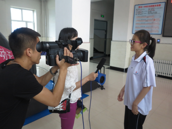 学生正在接受当地电视台采访