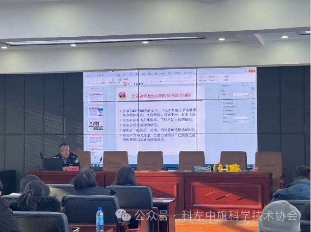 近日,科左中旗科普大篷车联合科左中旗委政法委组织普法志愿者到保康街道中心社区开展普法宣传活动。活动现场,邀请旗公安局政保大队大队长刘彦鹏、刑侦大队干部白雪松向居民群众讲授防邪反邪、防范电信网络诈骗等知识,并围绕反邪教、电信诈骗等案例“以案释法”,倡导广大社区群众自觉抵制和劝阻身边各种违法违规行为,提高安全法律意识,营造良好法治氛围。