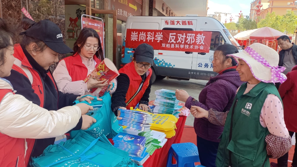 为进一步提升全民科学素质,提高群众识邪防邪反邪意识,加强群众自觉抵御邪教侵蚀的能力,倡导追求文明、崇尚科学的良好风气,2024年1月30日,双柏县科学技术协会在妥甸镇西城社区福海路年货街开展“崇尚科学,反对邪教”主题科普宣传活动。
