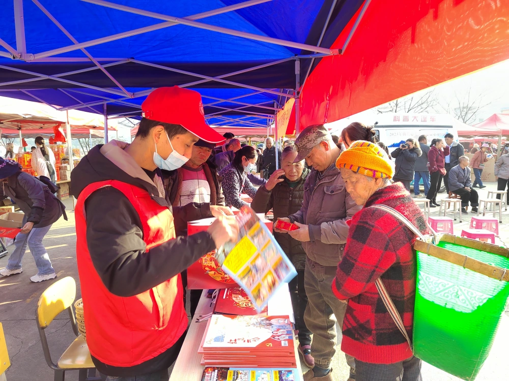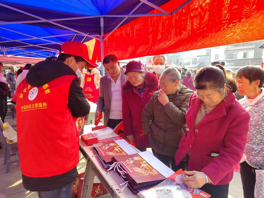 当天的“三下乡”活动现场热闹非凡,文艺汇演精彩纷呈,台上文艺工作者倾情演绎,台下科技工作者们开展义诊、送春联、全家福照片免费照、义剪、送科技知识等忙碌得热火朝天。活动中发放了《科普知识读本》、《应急科普手册》《文明过春节倡议书》、《遵纪守法我先行》、环保袋、科普围裙、等各类科普资料,通过三下乡活动,深入开展扶贫扶志行动,激活了乡村振兴内生动力。