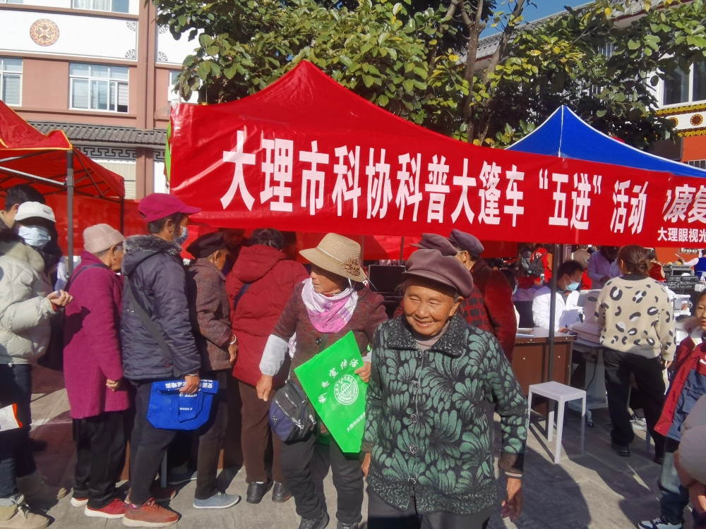 在活动中,科普志愿者们向农民群众普及畜牧养殖技术、蔬菜种植技术、洱海保护、反邪教、地震灾害预防等科学知识,向农民群众宣传惠农政策,引导农民群众解放思想、更新观念、提高素质、增强致富能力。同时,大理市科协联合大理眼视光眼科医院,组织医务人员用专业仪器设备免费为老人进行视力测试、白内障、青光眼、眼底疾病等各种眼科疾病检查,并为有需要的老人指导下一步诊疗方向,向老年人普及爱眼护眼科普知识。
