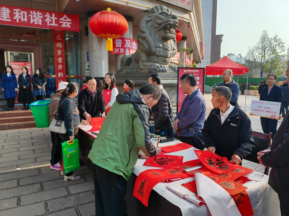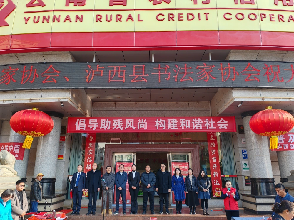 为进一步倡导扶残助残的良好社会风尚,2月3日,泸西县科协联合县总工会、县委宣传部、县文联、团县委、县妇联、县农村信用社等部门在泸西县农村信用社门口开展“倡导助残风尚 构建和谐社会”迎春送福主题科普志愿服务活动,把新年的祝愿化作一张张寓意吉祥的春联,为全县残疾人群众送上真挚的新春祝福与问候,同时营造社会关心、关爱残疾人的良好氛围。