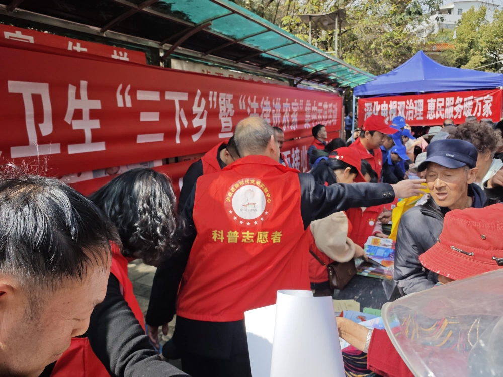 在文化、科技、卫生“三下乡”活动现场,科普志愿者热情真诚地向过往群众宣传科普知识、反邪教知识、反电诈技巧和应急避险知识,现场推广科普中国、泸西科普公众号和科普中国Lite,广泛发动群众注册科普信息员和科技志愿者,拓宽群众获取科普讯息渠道,助力全民科学素质提升。本次活动共为群众提供《趣味科普读本》《中华民族共同体与生态文明》《反邪教宣传手册》《爱国卫生宣传手册》等科普宣传手册2000余份,发放生活用品、科普刊物等宣传物品500余份。