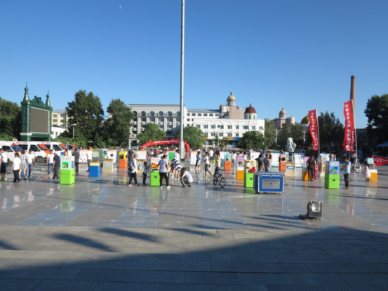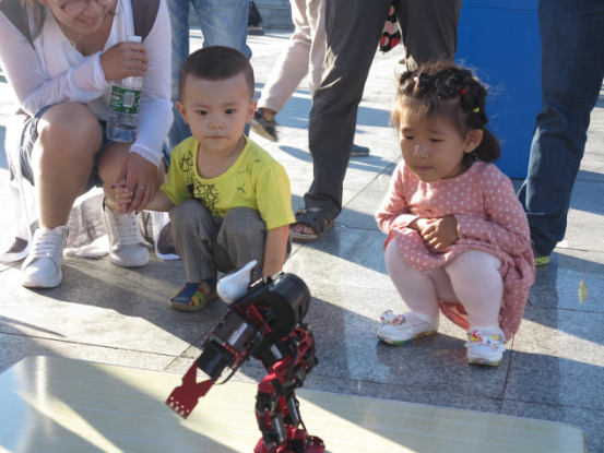 2016年7月14日,黑龙江省科协科普大篷车队“边疆百地千场万里行”活动,走进了有着“恐龙之乡”称呼的伊春市嘉荫县。展览第一日,科普大篷车巡展活动在嘉荫县江边广场举行。广场上人流如织,在这里散步、休闲娱乐的群众被新鲜的科及展品所吸引。有年逾花甲的老年人,有在父母陪同下的孩童,有穿着校服的中学生,有职工、警察、医生、教师等等,不同年龄阶段,不同职业的人们,纷纷涌向广场,大家在热闹和愉快的气氛中,体验着手边的展品,观看精彩的机器人表演,近距离的接触科学知识,体验着科学的神奇魅力,感受科技带来的乐趣,学习着科学知识,培养着科学兴趣,使此次边疆之行也收到了良好的展览效果。