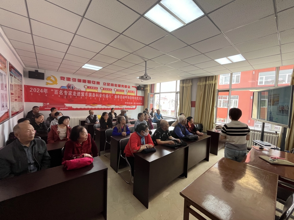 4月18日下午,武川县科协邀请内蒙古自治区人民医院副主任医师邹艳慧老师走进武川县可镇东官井社区开展2024年“百名专家走进盟市旗县科普传播行”春季活动——以老年人疾病预防为主题的健康科普讲座。