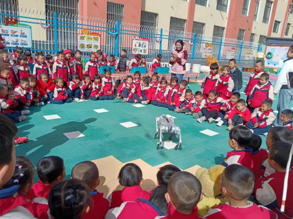 在今天上午的活动中,机器狗用它独特的舞姿和高难度的动作,俘获了一大波童心。在孩子的世界中机器狗虽然是一个机器人,但当机器狗靠近他们的时候,他们都本能的往后退,俨然在孩子眼中,这就是一条“会咬人的狗”。