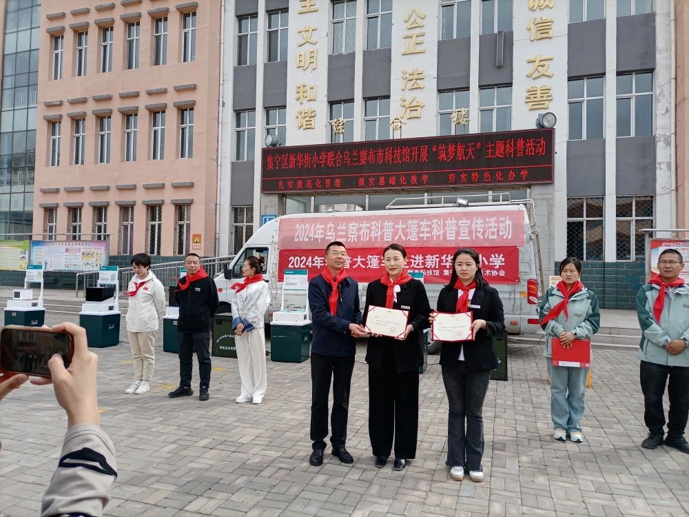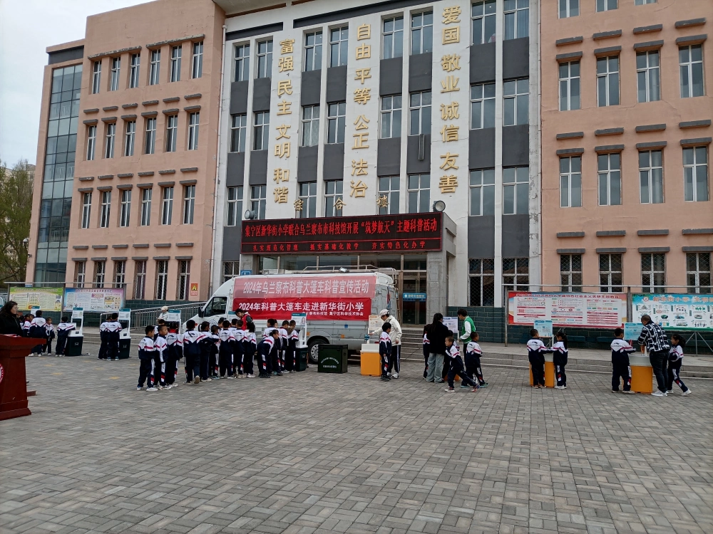 为向学生们弘扬科学精神,普及航天知识,激发航天梦想,4月26日,乌兰察布科技馆科普大篷车进校园活动来到集宁区新华街小学,开展“筑梦航天”科普活动,市科技馆领导、科学辅导员,以及学校的校长和各位老师都到场参加,给全校师生送来了一场集科学性、知识性、体验性于一体的科学盛宴。