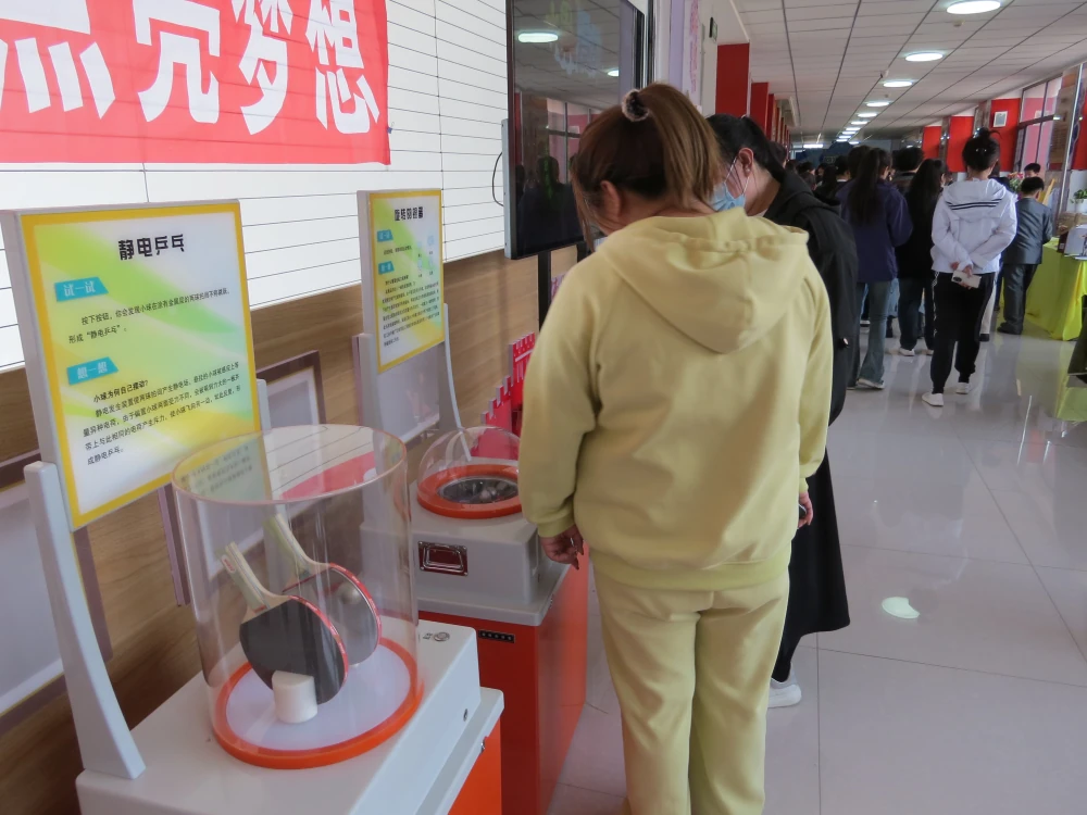 霍林郭勒市科学技术协会在活动现场开设科普大篷车展品体验区,其中包括声光电设备、电磁设备、光电感应设备、人体感应设备、机械传动设备、反应测试设备等,供师生、家长参与体验。