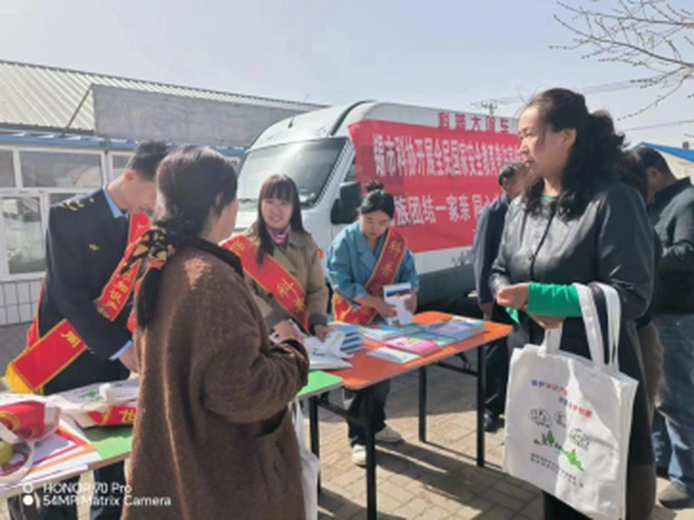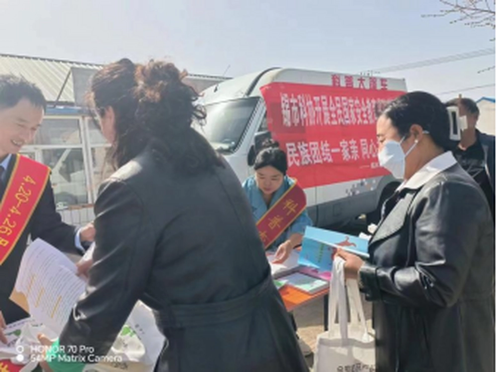 活动现场,科协积极发挥科普平台资源优势,充分利用科普大篷车载体作用,通过现场悬挂横幅、发放宣传材料等形式,向广大群众宣传党的民族理论政策及民族法律法规,积极引导广大群众参与到民族团结进步创建中来,提升广大群众对党的民族理论政策和民族法律法规的知晓率,并发放《中国共产党统一战线工作条例》《内蒙古自治区促进民族团结进步条例》等宣传材料。