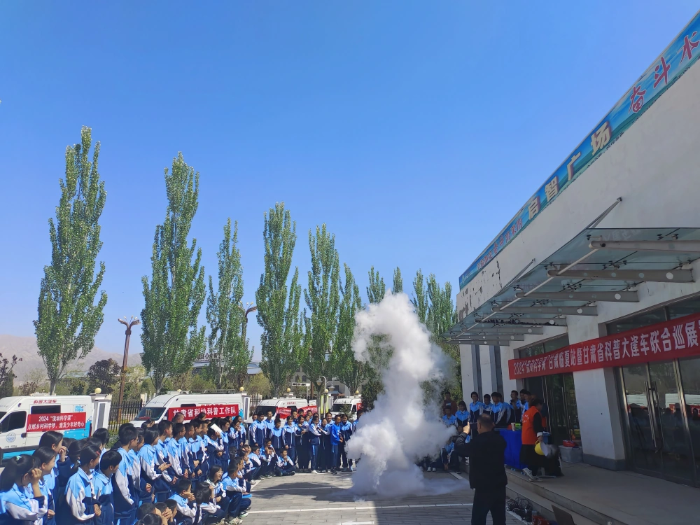 4月23日上午,由中国科技馆、教育部宣传教育中心联合抖音平台发起,甘肃省科协大力支持,省少数民族科普工作队、省科技馆、州科协、县科协共同协办的2024年“流动科学课”甘肃临夏站暨甘肃省科普大篷车联合巡展活动在永靖县太极中学开展,给同学们带来一堂别开生面的科普课。