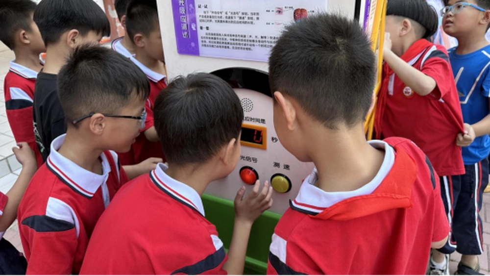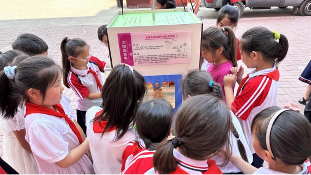 科普志愿者为学生讲解科普展品