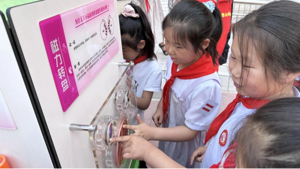 当日,鲁山县科协的科普大篷车满载声、光、电、磁等科普展品走进长兴小学,为该校师生送去了一场精彩的科学盛宴。同学们兴致勃勃地围在展品旁边,他们或观察、或动手操作、或思考或讨论,兴奋不已。