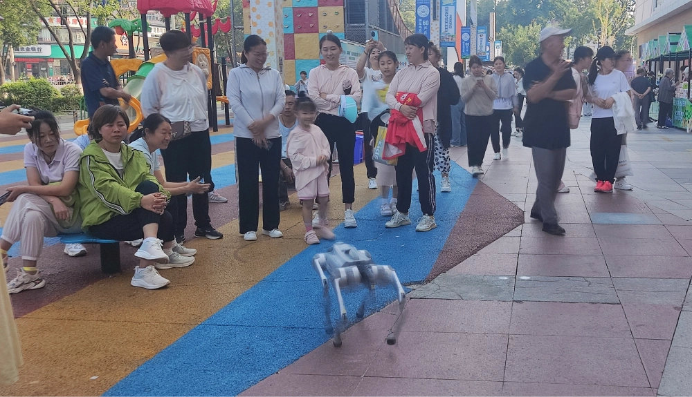文艺表演区,现场邀请乐队表演,歌手和现场观众激情互动,氛围感拉满,同时也邀请川剧变脸传承人在现场表演,体验国粹魅力。健康达人区,石嘴山中医院、社区卫生服务站现场开展把脉、问诊,量血压、测血糖、提供按摩理疗等服务。科普达人区,志愿者通过悬挂横幅、发放宣传单页、宣传册和讲解等方式向群众宣传“消防安全”“民生政策解读”……机器狗受到现场观众热捧,机器狗互动式体验,不仅可以抚摸“机器狗”,与其互动,还可以欣赏到机器狗表演的热情舞蹈,帮助现场观众走进科技交互世界。
