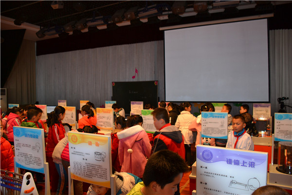 学生不用走出校园就参观到了许多奥妙无穷的科技展览,并亲自动手操作实践。“最速降线”、“懒惰杯”、“声光反映测试”等多个展品受到大家的青睐,整个展览会场充满了科技知识的气息。