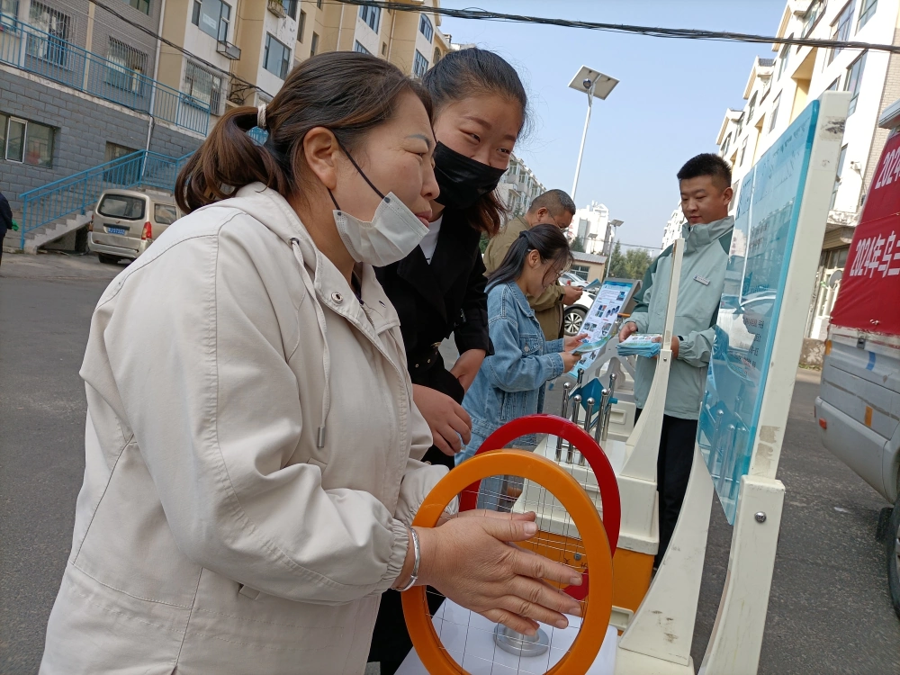 本次活动采用科普展品和宣传展板相结合的形式,我馆利用科普大篷车将各类科普展品带到社区,包括天鹅绒触觉、最速降线、锥体上滚、磁力传动摆……这些互动展品涵盖了声、光、电、磁等各类学科知识,让居民们在玩中学、学中玩,活动现场,气氛热烈,科普大篷车醒目的条幅和新奇的展品,吸引了居民们的围观,不少居民还积极地亲身实际体验操作,我馆的科普辅导员在旁边也用通俗易懂的语言为他们讲解展品的操作方法以及包含的科学原理,大家都认真聆听,仔细观察,时不时地和科普辅导员进行互动提问,沉浸式感受科技的的神奇力量。