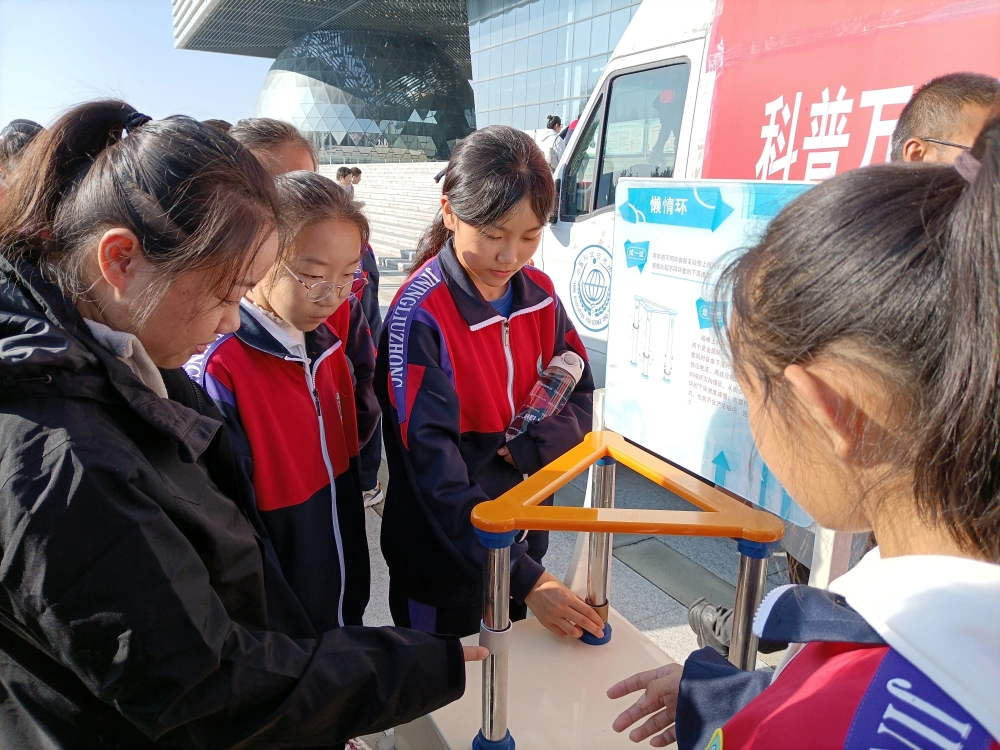 下一步我馆科普大篷车会继续发挥其区域资源共享的优势,开展多种寓教于乐的科普宣传活动,助力校园实现教育双减,通过有趣的科普展品和轻松的科普氛围,让学生们在放松愉悦的气氛中筑梦科创。
