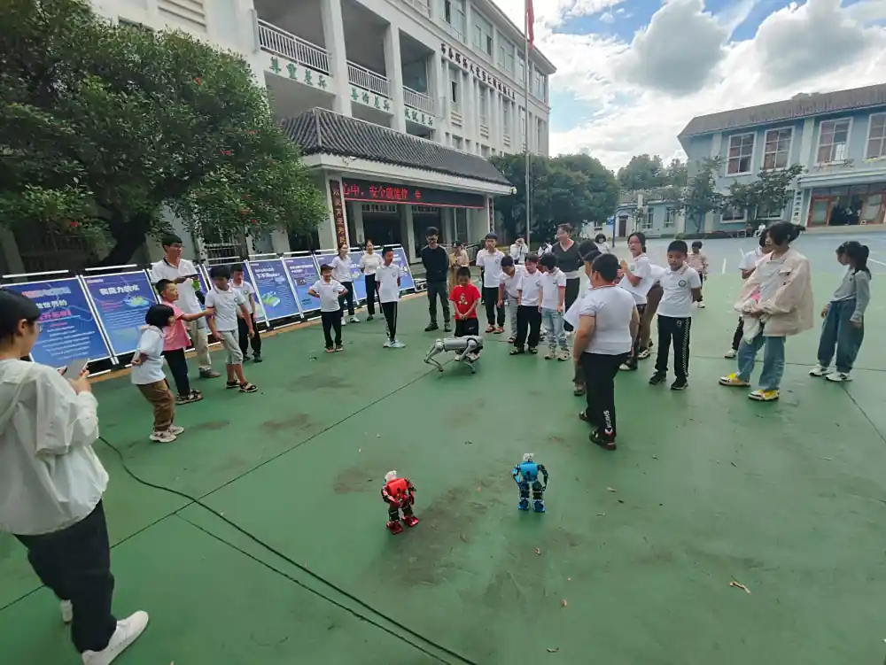 科普志愿者带领孩子们一起感受体验、科普展教具的魅力:智能机器人、机器狗伴随着欢快的音乐,灵活地完成了一系列高难度动作,展现出科技的魅力与未来感,引得大家阵阵欢笑。“时间的奥秘”科普知识展板内容丰富多彩,科普志愿者用贴近生活的实例解析,为孩子们讲解日常生活中的时间管理与珍惜时间的重要性。通过图文并茂、生动有趣的展示方式,大家在轻松愉快的氛围中学习到了关于时间的科学知识,体验了科学的奇妙。