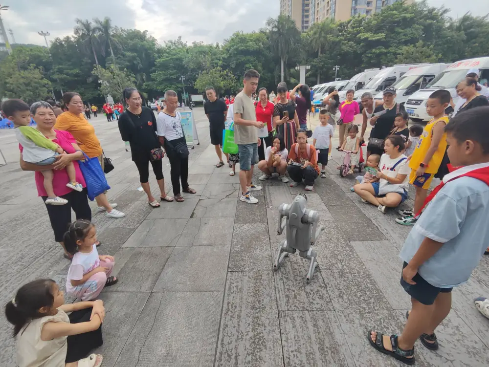 启动仪式结束后,科普志愿者们还开展了“国门科普广场”联合科普活动,志愿者围绕民生科技、科学文化、农业生产等公众关注热点进行科普宣传,为群众送上“科普大餐”。志愿者为群众们带来了VR眼镜体验和机器狗表演,并向群众们发放了围裙、环保袋等物资和防灾减灾、科技知识等科普宣传手册。