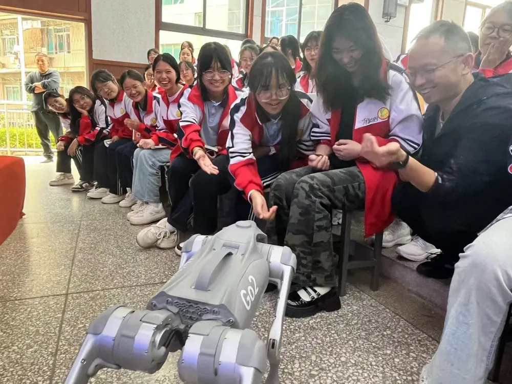 在报告厅舞台上,首先登场的是精彩的机器人和机器狗表演。机器人先是缓缓抬起双臂,以一种优雅而流畅的动作向同学们致意,随后开始了精彩的表演;机器人表演结束后,机器狗以机智灵活的形象登场,瞬间引爆整个报告厅。紧接着的是由曲靖市科技馆与会泽县科协给大家带来的实验秀表演,如魔法火焰掌、空气大炮、大象牙膏等。各种奇妙的科学现象在实验中一一呈现。学生们怀着激动的心情纷纷想亲自上台体验科学的神奇魅力。而在展品观看区域,同学们在科普辅导员的指导下,亲自动手操作这些展品,感受科学的神奇力量。活动的最后,给学生们分发了手工套材,为学生们提供了一个动手实践的机会。