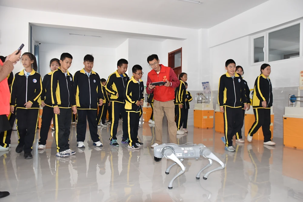 现场展出的科普展品融入了力学、电磁学、光学、声学、数学等科学知识和科学原理,集知识性、趣味性、互动性为一体。孩子们在科普志愿者和老师的带领下,有序地进行参观和体验,兴致勃勃地穿梭在各个展品,主动观察、实操、思考、讨论,零距离感受着科技世界的神奇,探索着其中的奥秘。其中机器狗灵动轻巧的身姿、协同一致的步伐成为了众多孩子目光的焦点,赢得了满堂喝彩,展现出非凡的机械魅力与创新活力,迅速成为了孩子们喜欢的“新伙伴”!